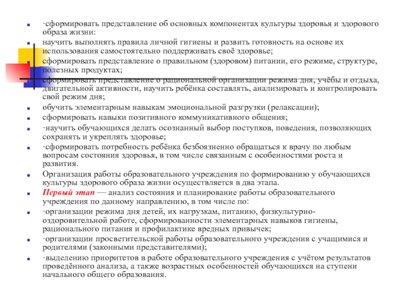 Слайд 12·сформировать представление об основных компонентах культуры здоровья и здорового образа жизни: