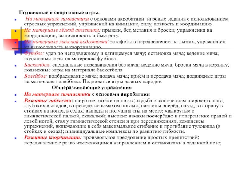 основами акробатики: игровые задания с использованием строевых упражнений, упражнений на внимание, силу, ловкость и координацию.