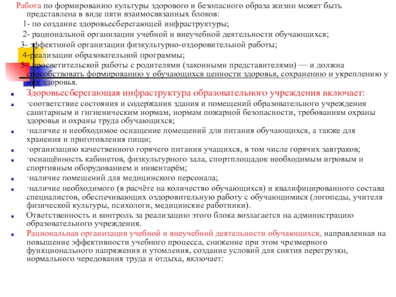 5- просветительской работы с родителями (законными представителями) — и должна способствовать формированию у обучающихся ценности здоровья, сохранению и укреплению у них здоровья.