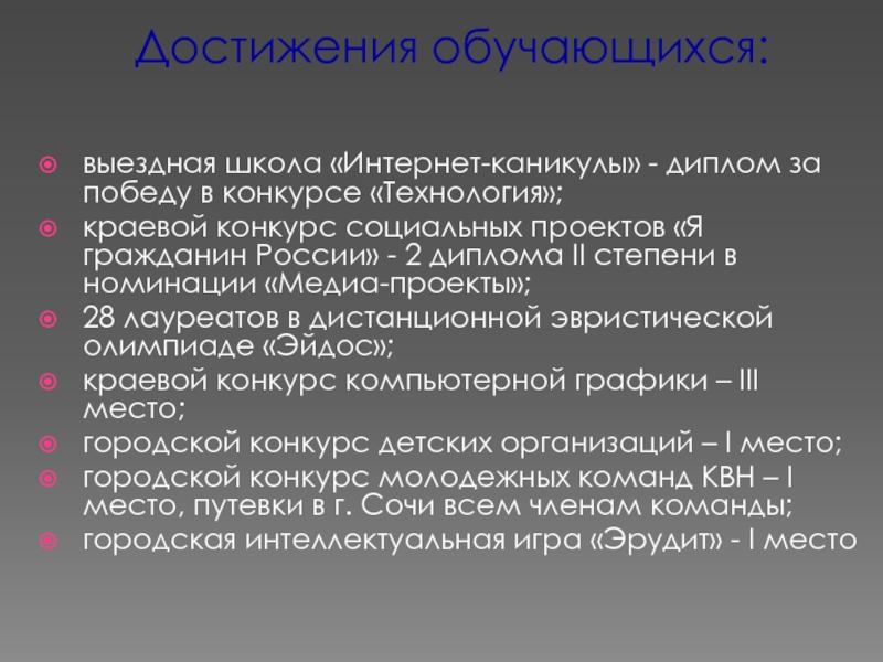 18 краевая научно-практическая конференция «Первые шаги в науку» - диплом II степени;
