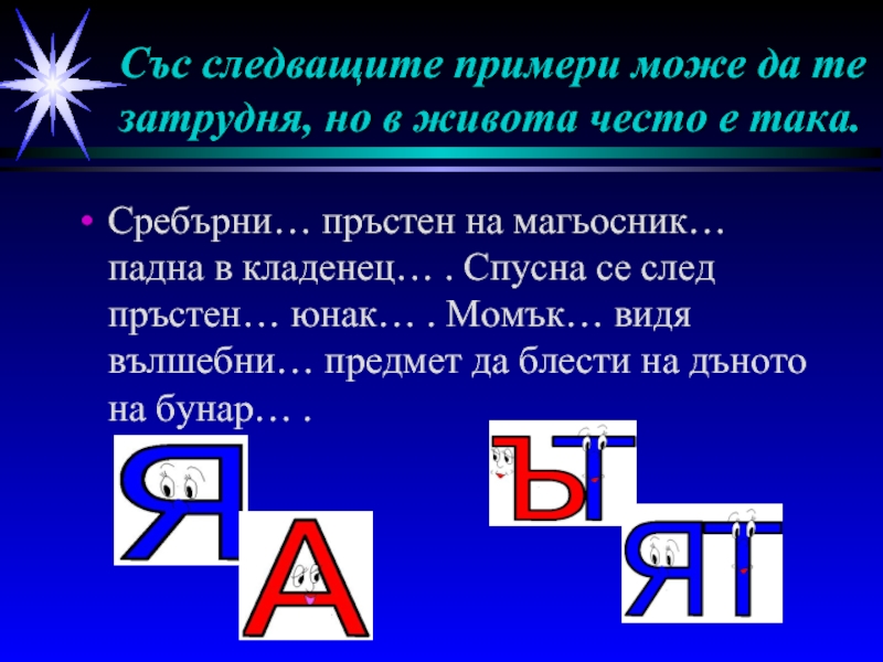 Сребърни… пръстен на магьосник… падна в кладенец… . Спусна се след пръстен… юнак… . Момък… видя вълшебни… предмет да блести на дъното на бунар… .