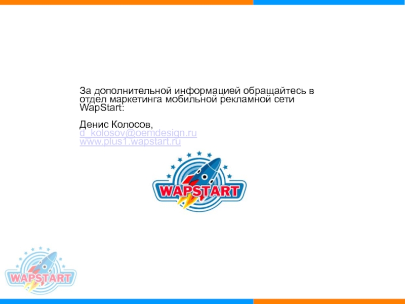 Слайд 15За дополнительной информацией обращайтесь в отдел маркетинга мобильной рекламной сети WapStart: