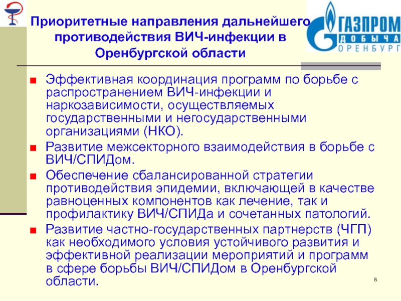 Слайд 8Приоритетные направления дальнейшего противодействия ВИЧ-инфекции в Оренбургской области