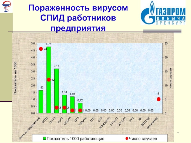 Слайд 11Пораженность вирусом СПИД работников предприятия