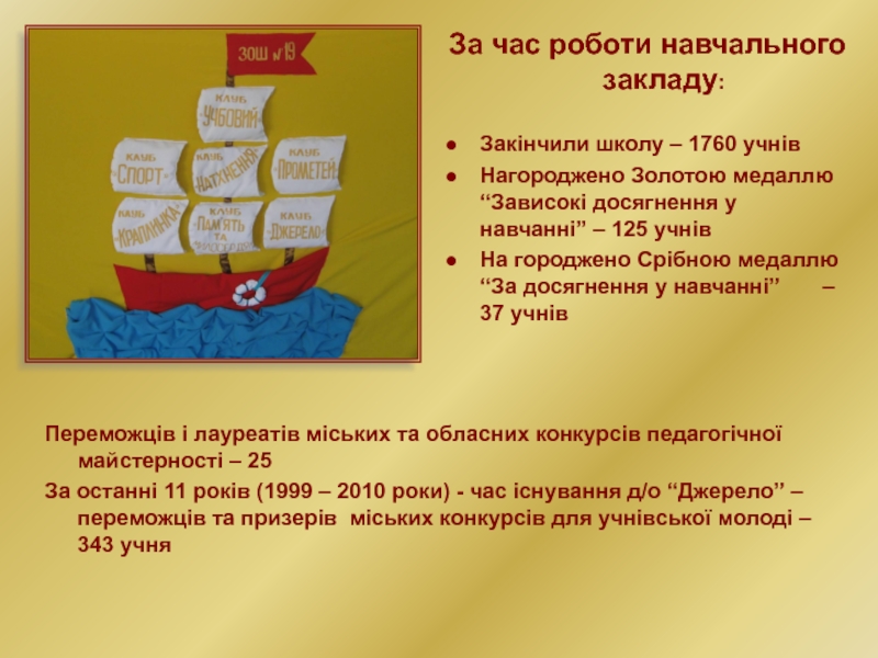 За останні 11 років (1999 – 2010 роки) - час існування д/о “Джерело” – переможців та призерів міських конкурсів для учнівської молоді – 343 учня