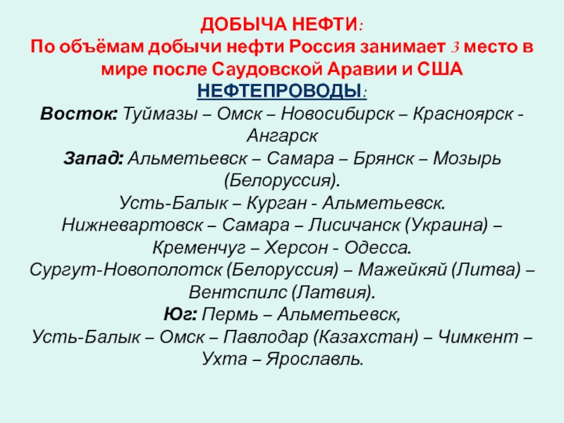 Крупнейшие месторождения в России: Уренгойское, Ямбургское, Заполярное, Медвежье.
