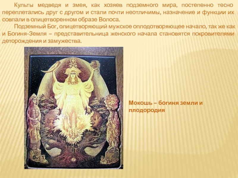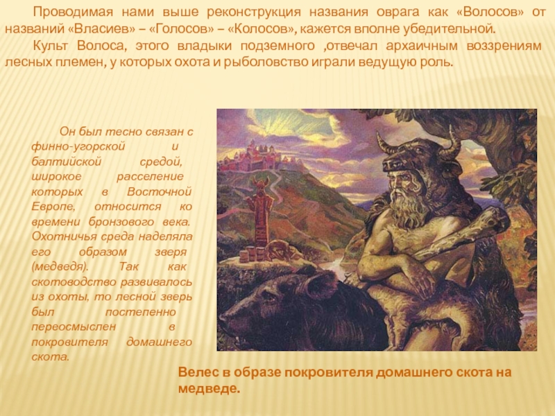 Он был тесно связан с финно-угорской и балтийской средой, широкое расселение которых в Восточной Европе, относится ко времени бронзового века. Охотничья среда наделяла его образом зверя (медведя). Так как скотоводство развивалось из охоты, то лесной зверь был постепенно переосмыслен в покровителя домашнего скота.