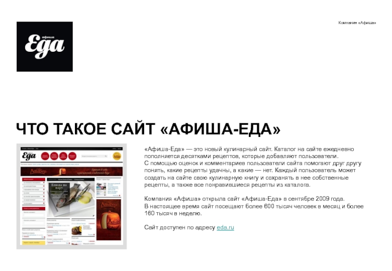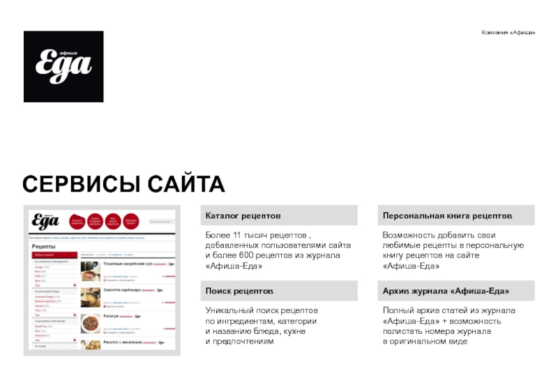 на сайт с целью найти рецепты, почитать журнал «Афиша-Еда»
