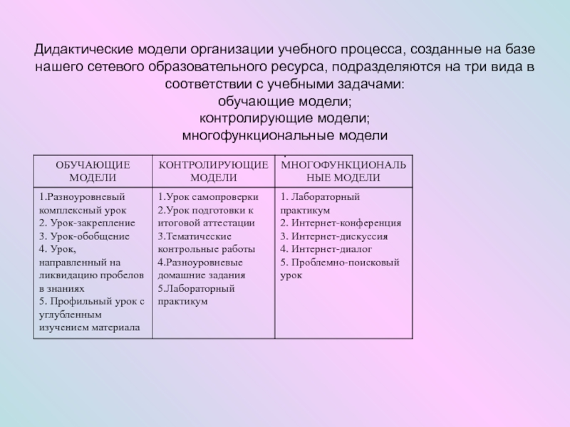 Слайд 4Дидактические модели организации учебного процесса, созданные на базе нашего сетевого образовательного