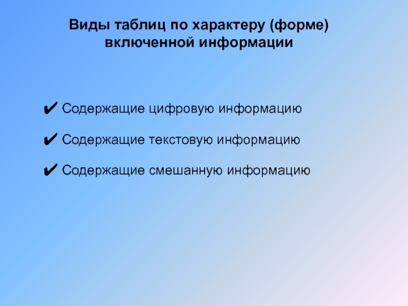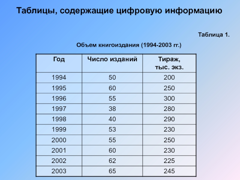 Слайд 26 Таблицы, содержащие цифровую информацию
