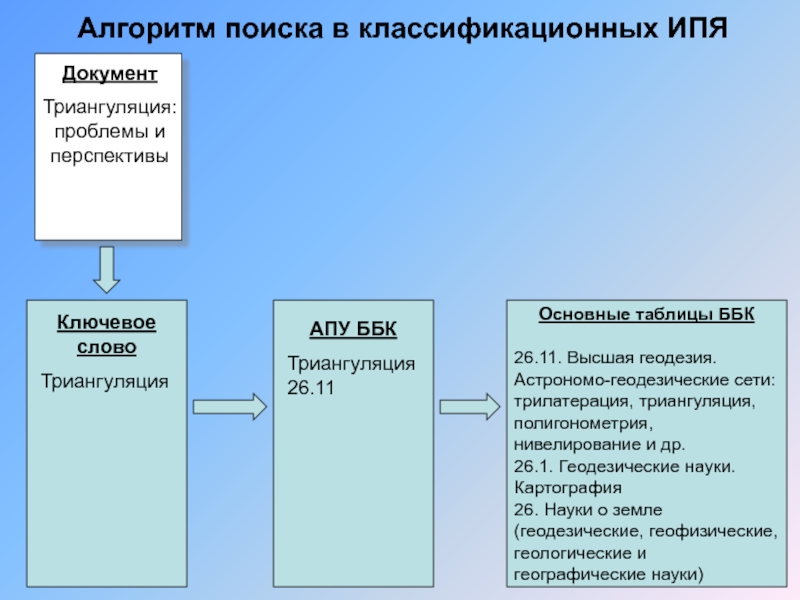 Слайд 8Алгоритм поиска в классификационных ИПЯ