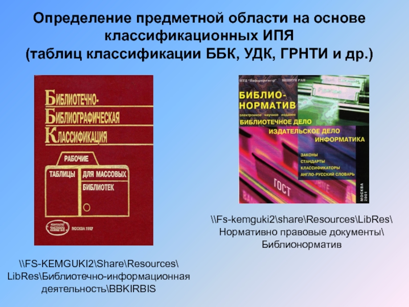 Слайд 7Определение предметной области на основе классификационных ИПЯ