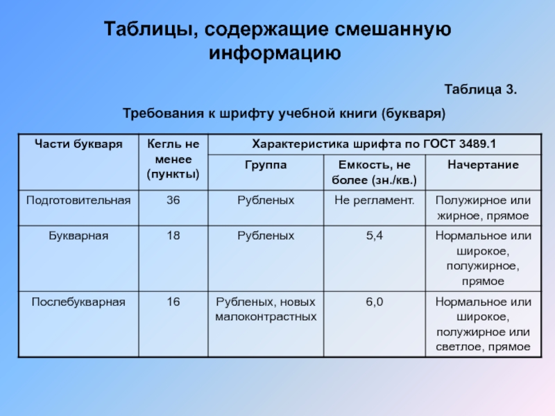 Слайд 28 Таблицы, содержащие смешанную информацию
