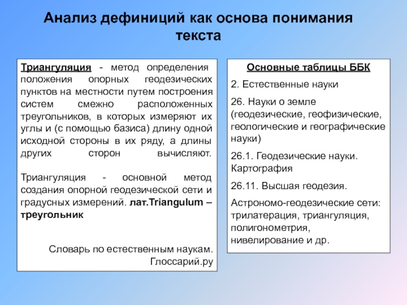 Триангуляция - основной метод создания опорной геодезической сети и градусных измерений. лат.Triangulum – треугольник