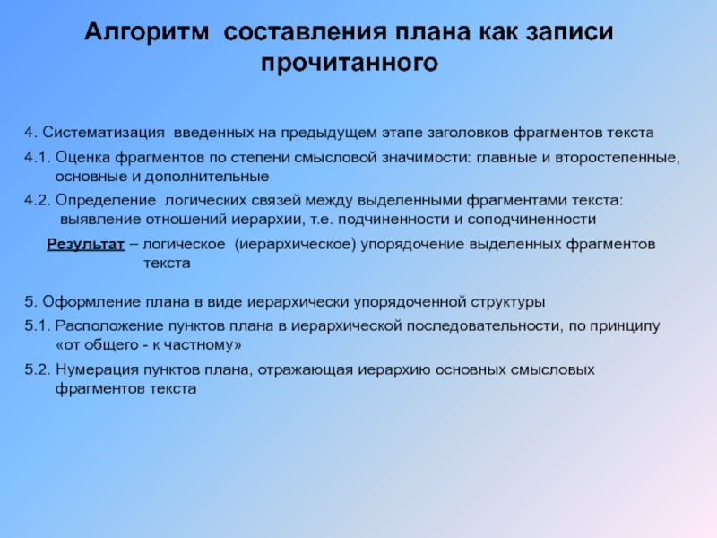 Слайд 14Алгоритм составления плана как записи прочитанного