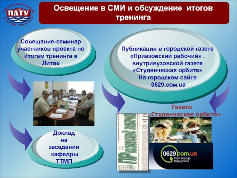 Публикация в городской газете «Приазовский рабочий» , внутривузовской газете «Студенческая орбита»