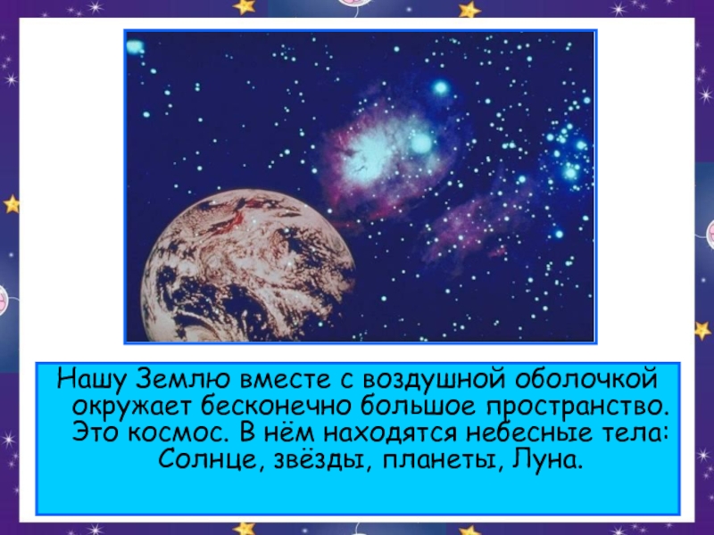 Слайд 3Нашу Землю вместе с воздушной оболочкой окружает бесконечно большое пространство. Это