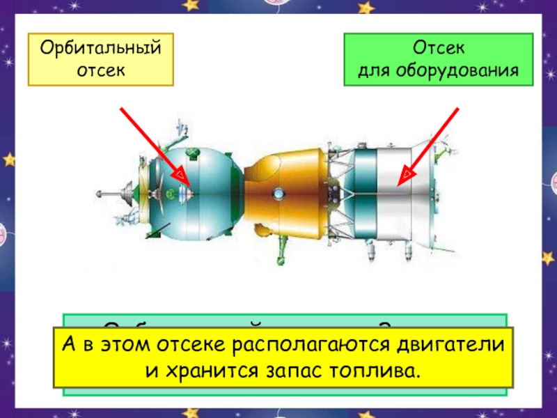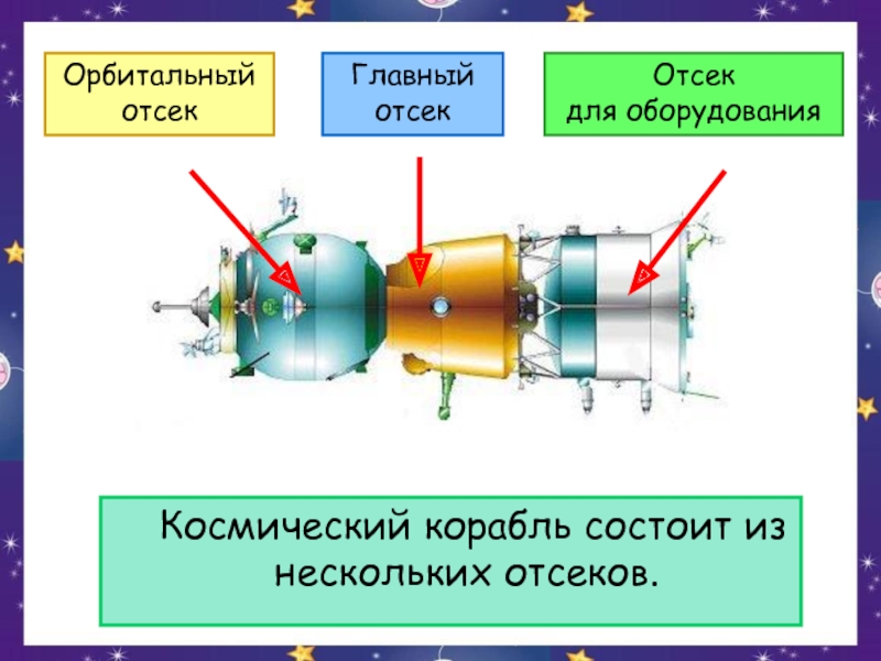 Слайд 17 Космический корабль состоит из нескольких отсеков.