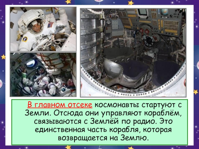 связываются с Землёй по радио. Это единственная часть корабля, которая возвращается на Землю.