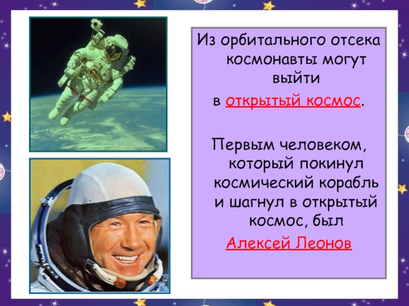 Слайд 21Из орбитального отсека космонавты могут выйти