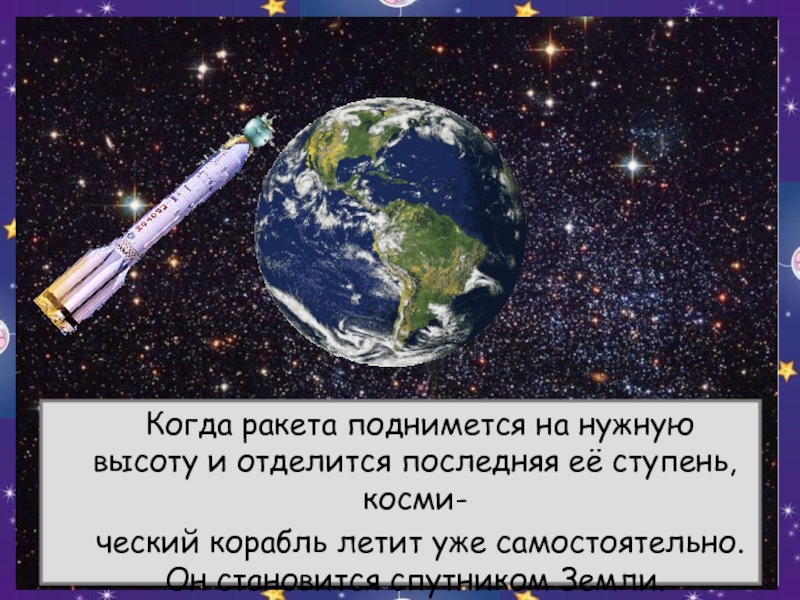 ческий корабль летит уже самостоятельно. Он становится спутником Земли.