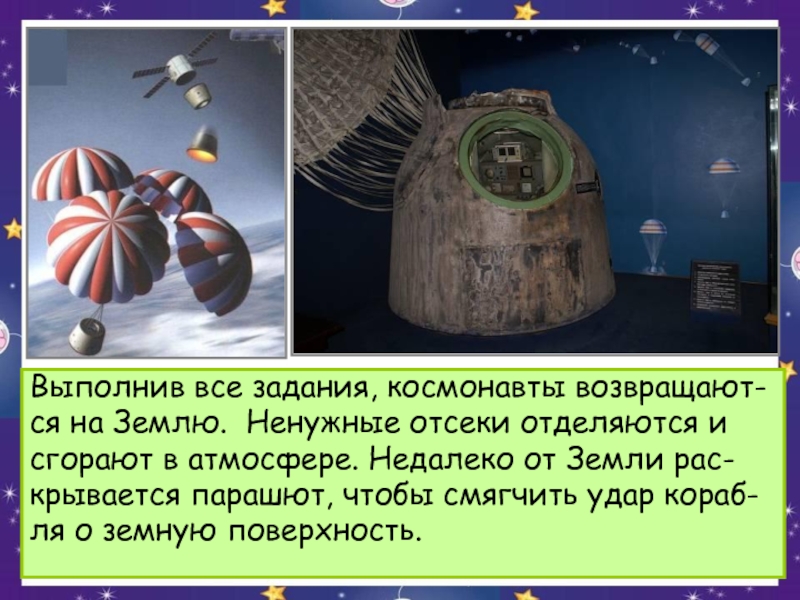 Слайд 24 Орбитальный отсек на Землю не возвращается.
