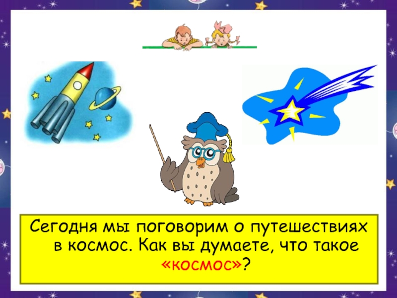 Слайд 2Сегодня мы поговорим о путешествиях в космос. Как вы думаете, что