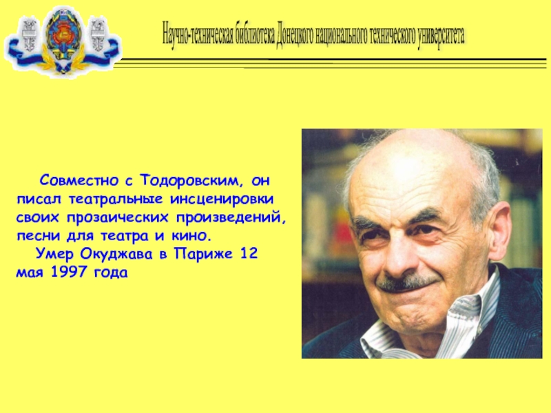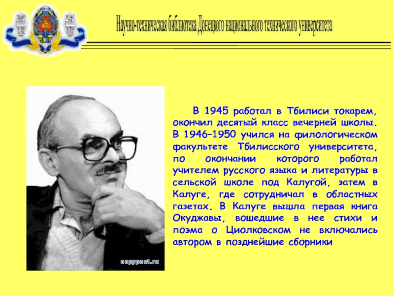 Слайд 1ОКУДЖАВА БУЛАТ ШАЛВОВИЧ