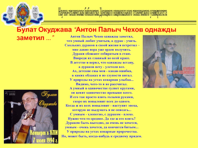 Слайд 17Булат Окуджава “Антон Палыч Чехов однажды заметил ...”