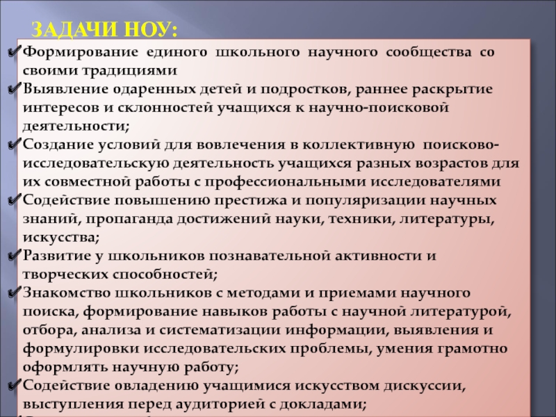 СОДЕРЖАНИЕ И ФОРМЫ РАБОТЫ НОУ: