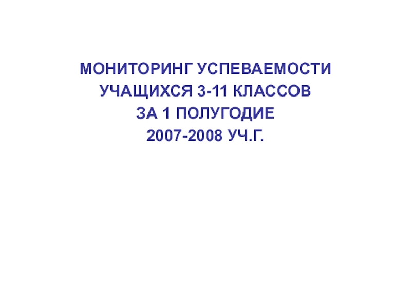 МОНИТОРИНГ УСПЕВАЕМОСТИ УЧАЩИХСЯ 3-11 КЛАССОВ ЗА 1 ПОЛУГОДИЕ 2007-2008 УЧ.Г. презентация
