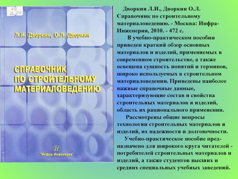 Слайд 116 Дворкин Л.И., Дворкин О.Л. Справочник по строительному материаловедению. -