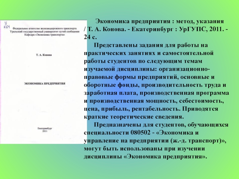 / Т. А. Конова. - Екатеринбург : УрГУПС, 2011. - 16 с.