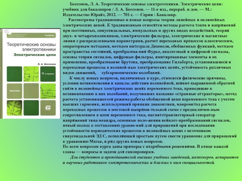 Изложен материал, освоение которого позволит учащимся получить практические навыки в реше-нии таких вопросов автоматизации технологических процессов, как разработка простейших (релейно-кон-такторных) систем управления дви-гателями рабочих машин и другими преобразователями энергии; составление передаточных функций; дифференциальных и характеристических уравнений систем автоматического регулирования (САР) на основе применения критериев устойчивости.