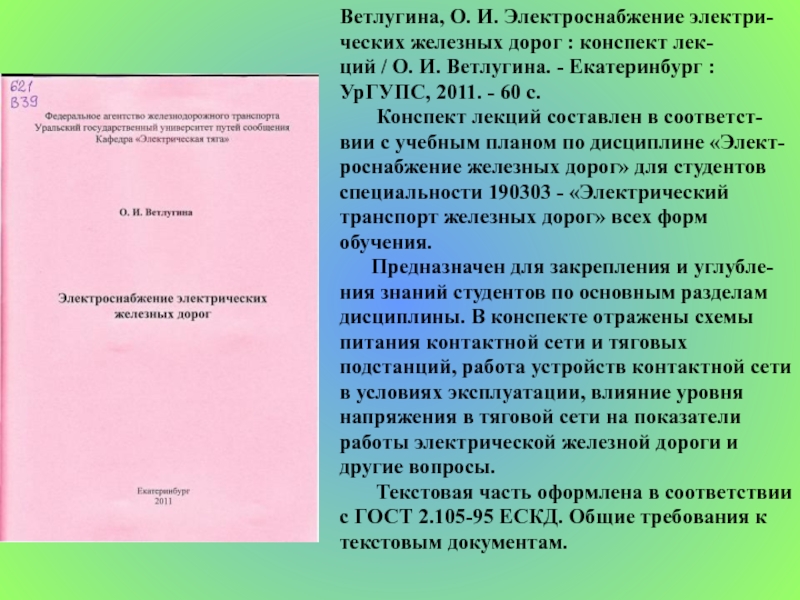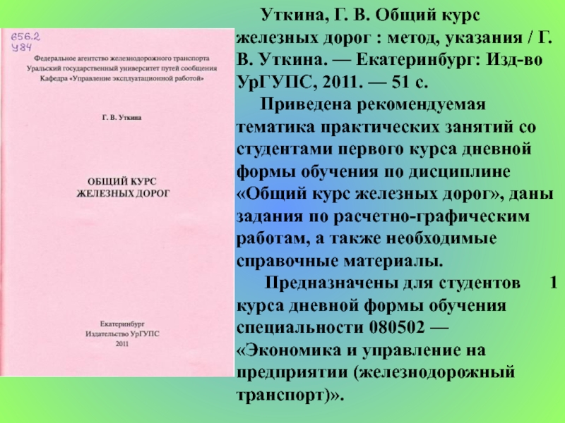 Слайд 109 Уткина, Г. В. Общий курс железных дорог :