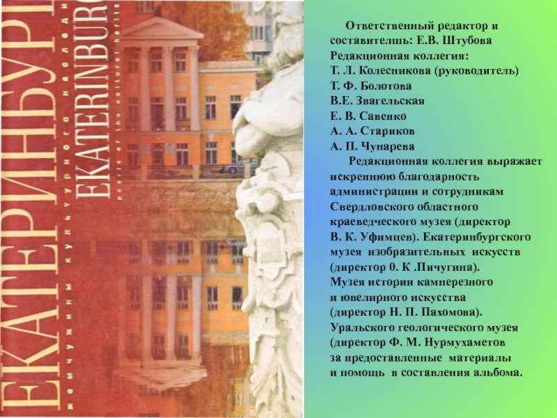 В. К. Уфимцев). Екатеринбургского музея изобразительных искусств (директор 0. К .Пичугина).