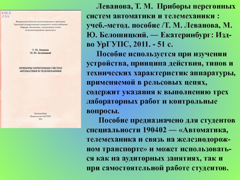 Слайд 107 Леванова, Т. М. Приборы перегонных систем автоматики и