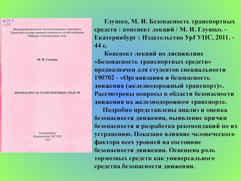 лекций / М. И. Глушко. -Екатеринбург : Издательство УрГУПС, 2011. - 44 с.