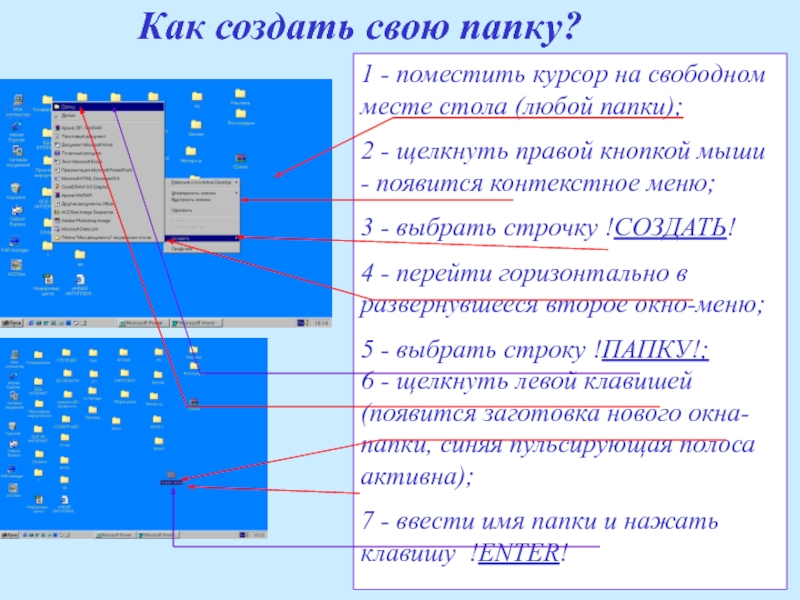 3-выбрать пункт меню «Переименовать» и сделать «левый клёк» - строка с именем папки станет синей и пульсирующей;
