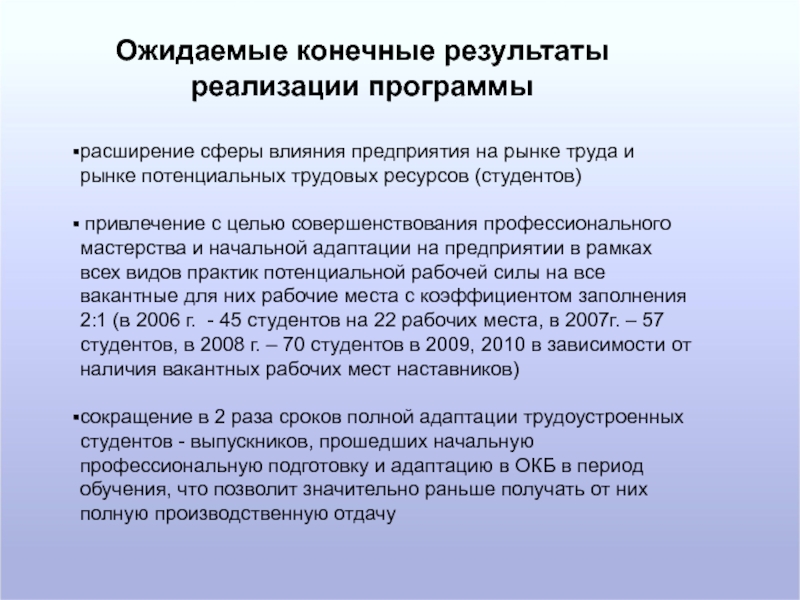 профессионального образования по профессиональной ориентации и подготовке студентов на базе ОАО ЭОКБ «Сигнал» им. А.И. Глухарёва на 2006-2010 годы»
