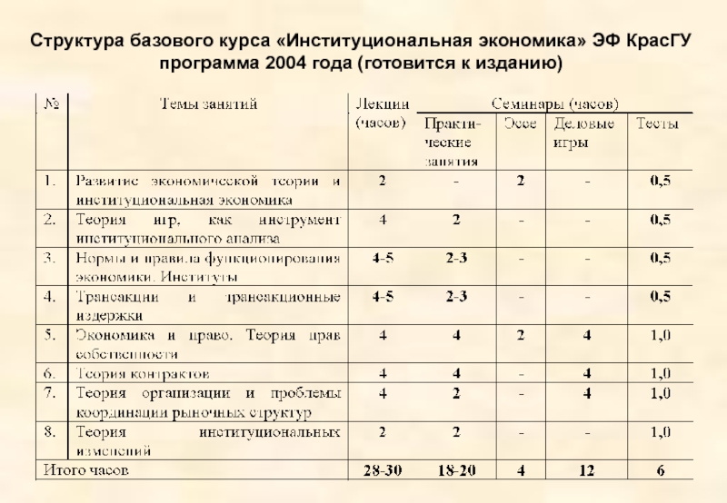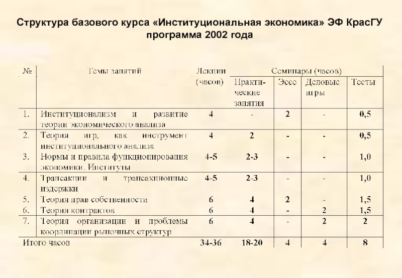 Слайд 24Структура базового курса «Институциональная экономика» ЭФ КрасГУ