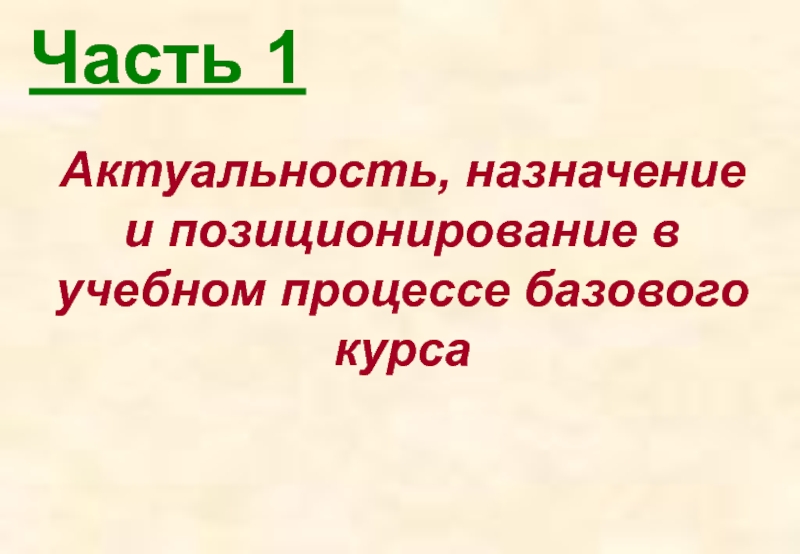 Актуальность, назначение и позиционирование в учебном процессе базового курса