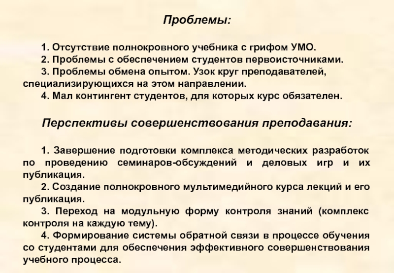 1. Отсутствие полнокровного учебника с грифом УМО.
