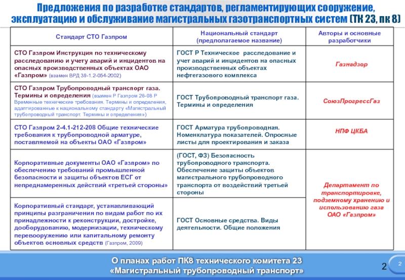Предложения по разработке стандартов (ТК 23, пк 8)