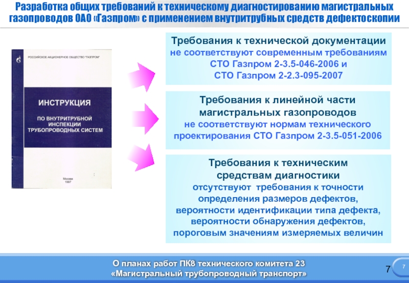 не соответствуют современным требованиям СТО Газпром 2-3.5-046-2006 и