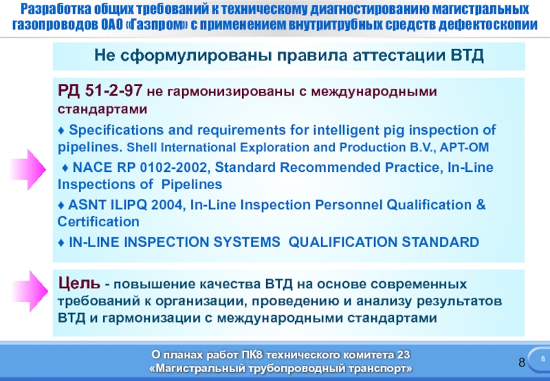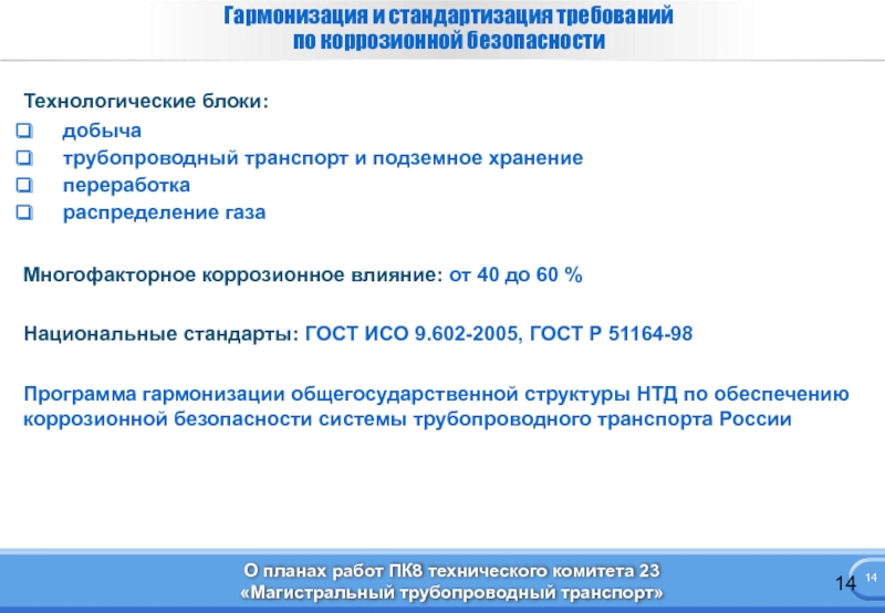 Программа гармонизации общегосударственной структуры НТД по обеспечению коррозионной безопасности системы трубопроводного транспорта России