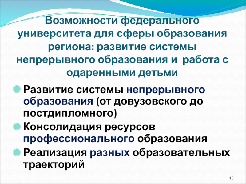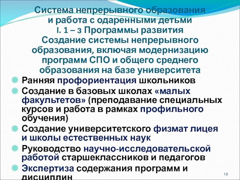 Развитие системы непрерывного образования (от довузовского до постдипломного)