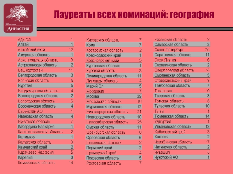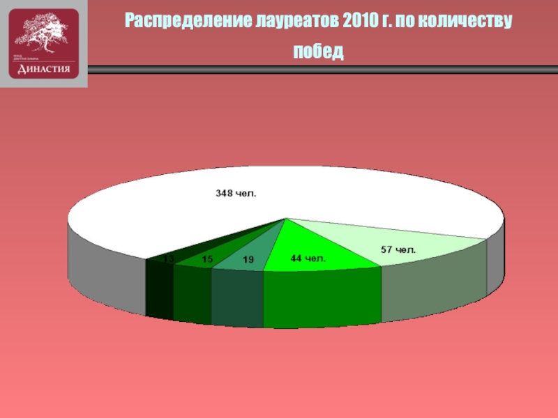 Слайд 23Распределение лауреатов 2010 г. по количеству побед