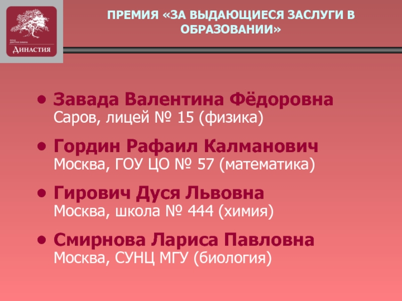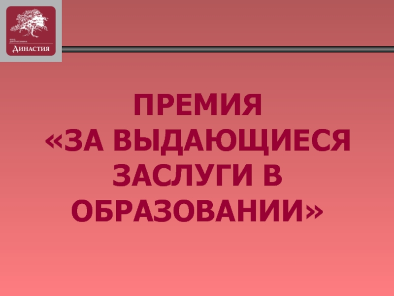 Слайд 18ПРЕМИЯ «ЗА ВЫДАЮЩИЕСЯ ЗАСЛУГИ В ОБРАЗОВАНИИ»