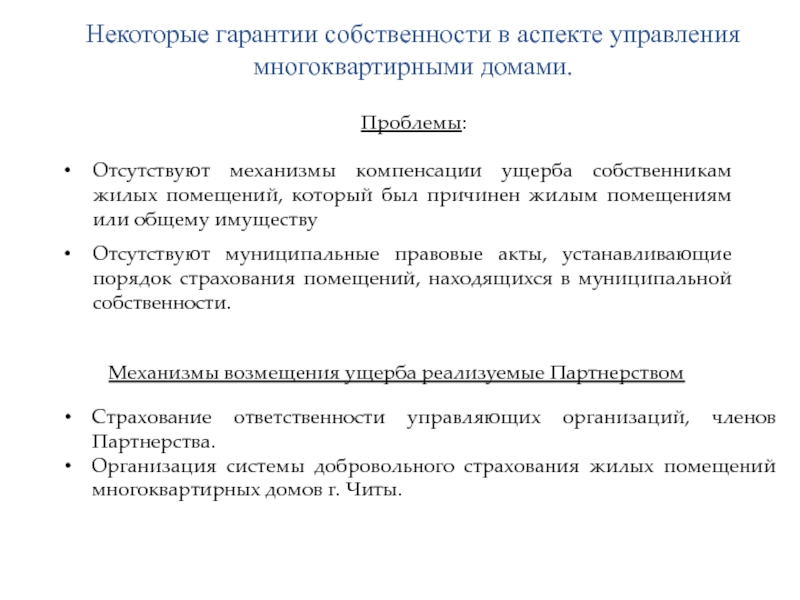Отсутствуют механизмы компенсации ущерба собственникам жилых помещений, который был причинен жилым помещениям или общему имуществу